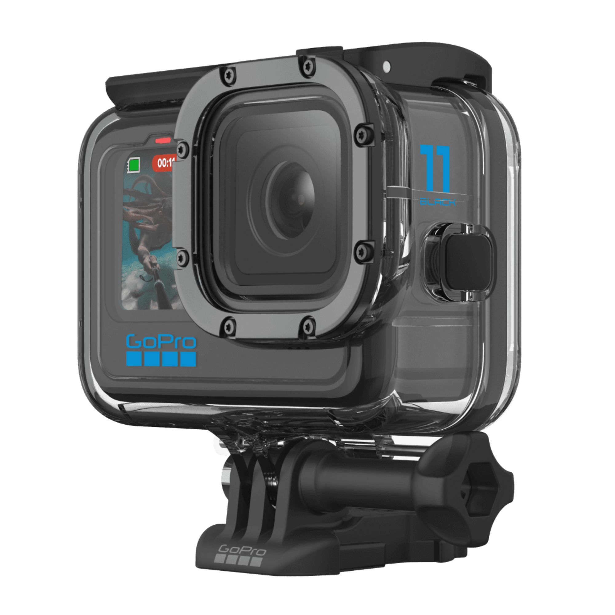 HERO11 Black & La HERO10 Black y la HERO9 Black ya son resistentes y sumergibles de por sí, pero con esta sólida carcasa protectora aguantarán todo lo que les eches. No solo la protege de la suciedad y de las partículas del aire sino que, además, es sumergible hasta 60 m, es decir, perfecta para el buceo en aguas profundas.