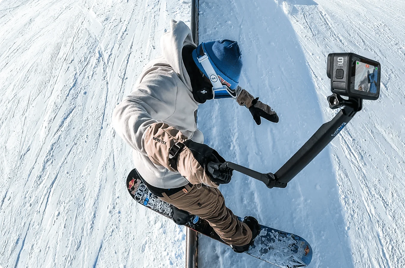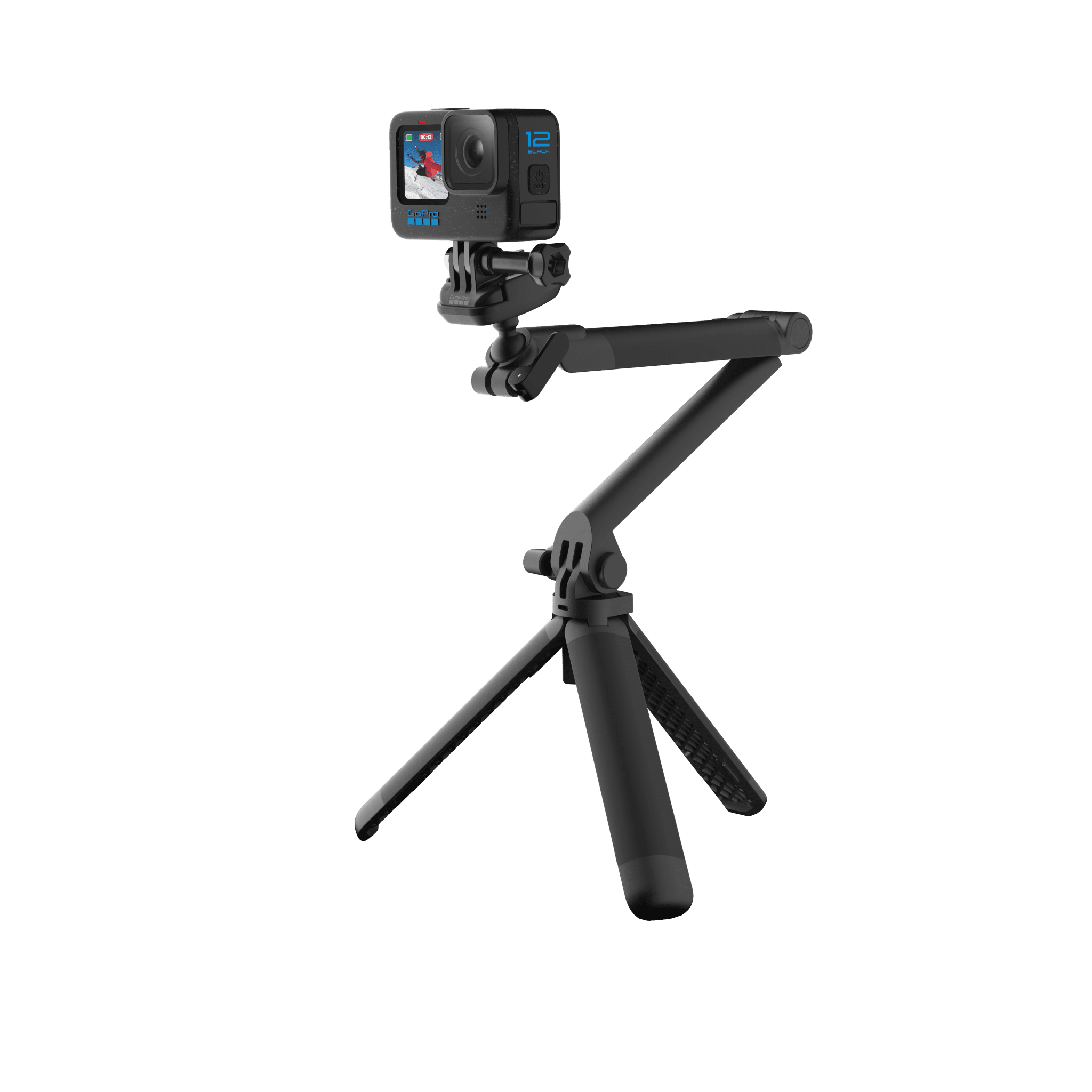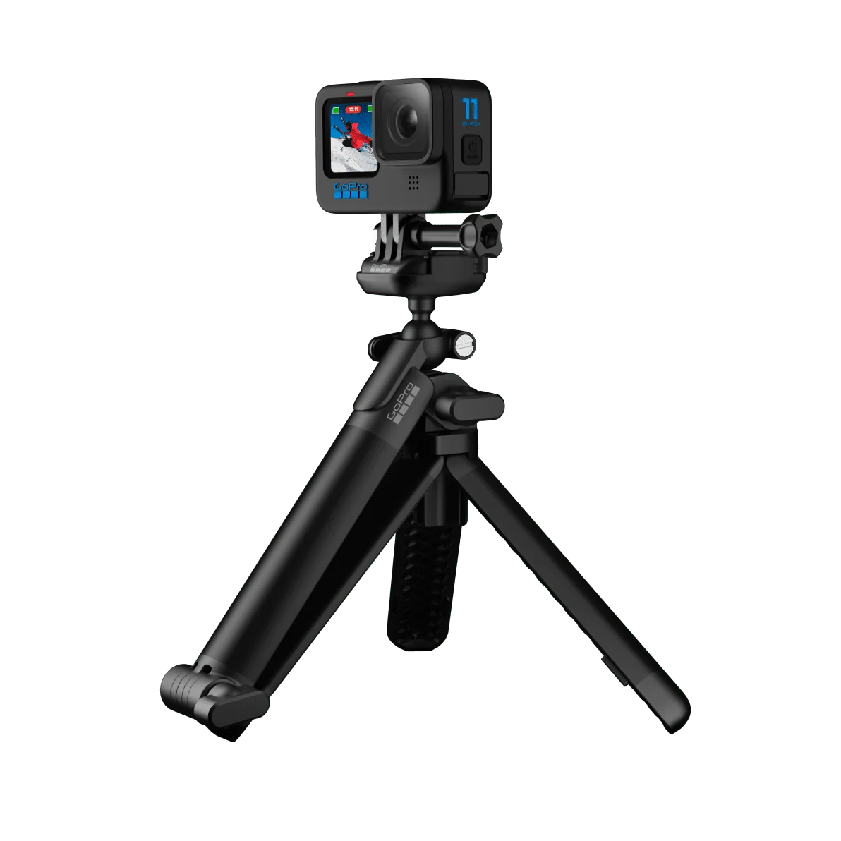 Soporte 3 en 1 definitivo de GoPro: empuñadura, trípode y brazo de extensión en un solo accesorio. Su diseño ergonómico y articulación esférica integrada permiten capturar selfies, tomas de seguimiento y encuadres creativos con total comodidad y libertad, tanto dentro como fuera del agua.