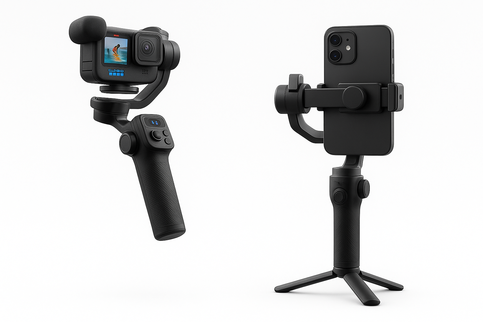 Su diseño versátil lo hace compatible con teléfonos móviles, cámaras GoPro y cámaras compactas, brindando estabilidad y precisión sin importar el dispositivo. Gracias a su estructura robusta, soporta equipos de hasta 400 g, permitiendo el uso de lentes, filtros y accesorios adicionales.